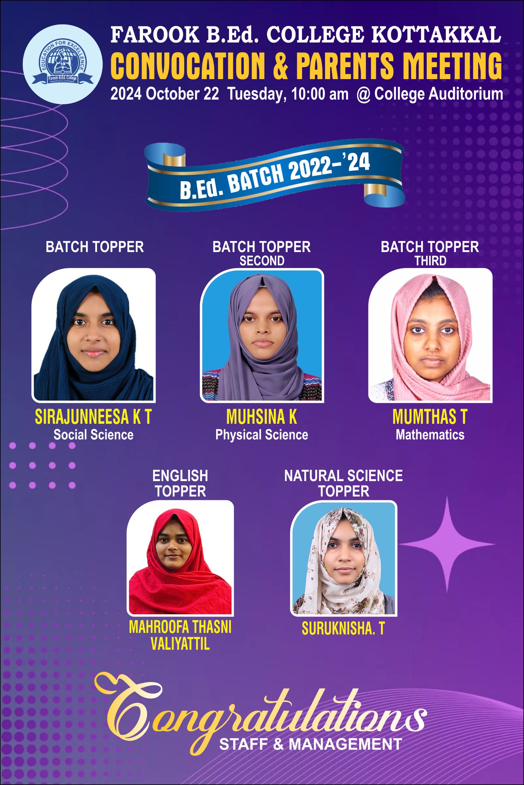At Farook B.Ed College, we are more than just an institution; we are a legacy of excellence, spirituality, and social service.